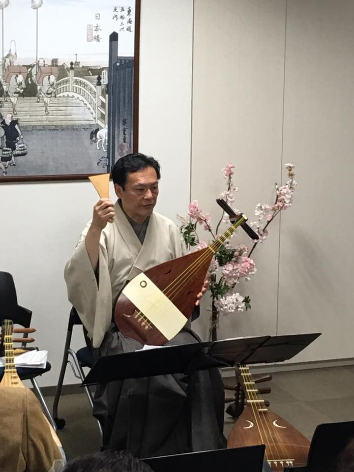 私は自分の教室は持っていませんが、とある小さな音楽教室で数人に琵琶を教えています。その時生徒に一番最初に言うのが、正中線がずれていないか。体が傾いていないか。腕、胸・背中、肩、喉、顎等、上半身の力が抜けているか。こういう点を先ず注意します。