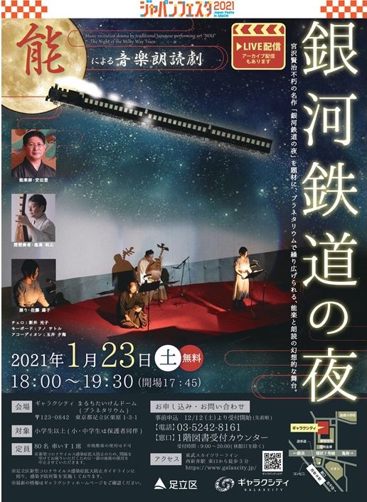 今年は先ず、昨年に引き続きギャラクシティープラネタリュウムドームにて、1月23日に「銀河鉄道の夜」を上演いたします。(画像がちょっと小さくてすいません)