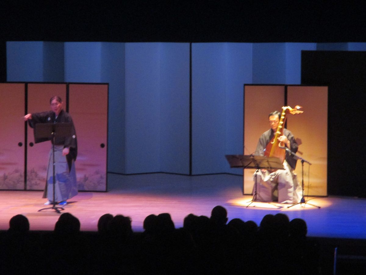 日本橋富沢町楽琵会にて、津村禮次郎先生(photo 新藤義久)。ルーテル市谷ホールにて、日舞の花柳面先生と