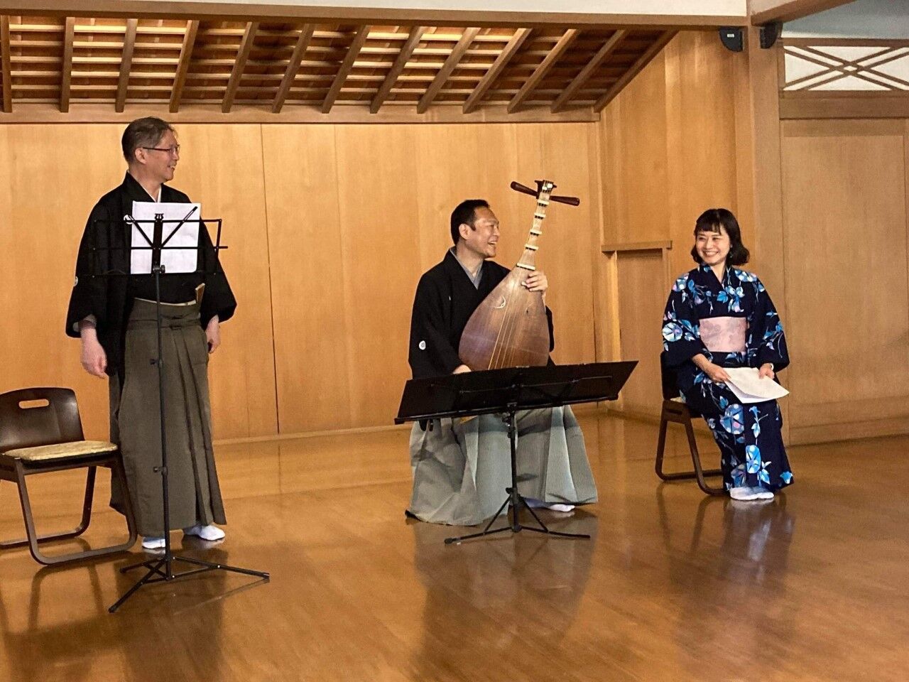 鎌倉の旧村上邸能舞台にて 安田登先生、優榊原有美さんと