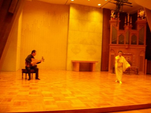 日本橋富沢町楽琵会にて、津村禮次郎先生(photo 新藤義久)。ルーテル市谷ホールにて、日舞の花柳面先生と