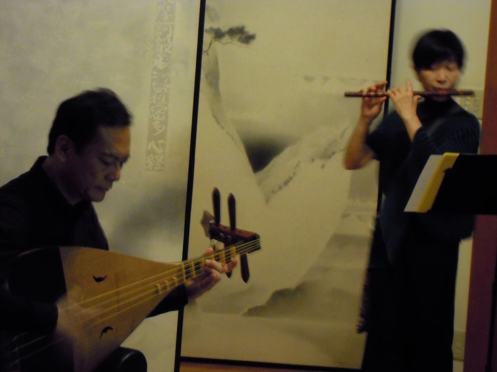 日本橋富沢町楽琵会にて Viの田澤明子さん、笙のジョウシュウ・ジポーリン君と photo 新藤義久