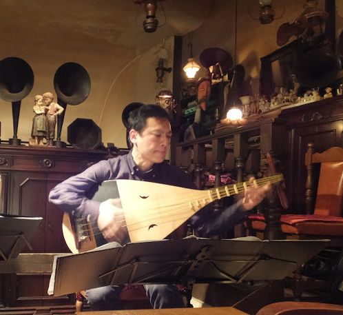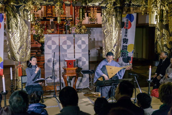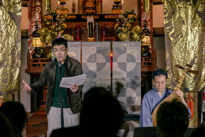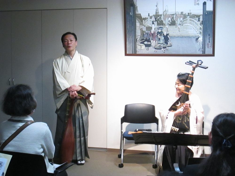日本橋富沢町楽琵会にて。筑前琵琶の鶴山旭翔さんと