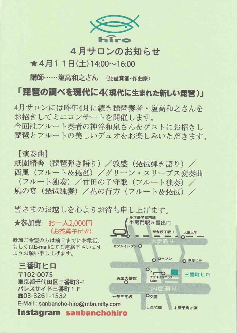この時代にこそ音楽を響かせたい。その場を盛り上げる賑やかしではなく、じっくりと聴くことが出来る音楽を奏でたい。今色々な演奏会やイベントが中止になっていますが、私は自分の主催する演奏会はやって行こうと思っています。次は3月11日の琵琶樂人倶楽部。個性的なスタイルで独自の活動をしている岡崎史絃君をゲストに開催します。是非お越しください。