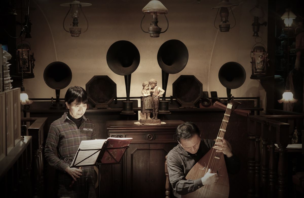 琵琶樂人倶楽部にて、笛の大浦典子さんと photo 新藤義久