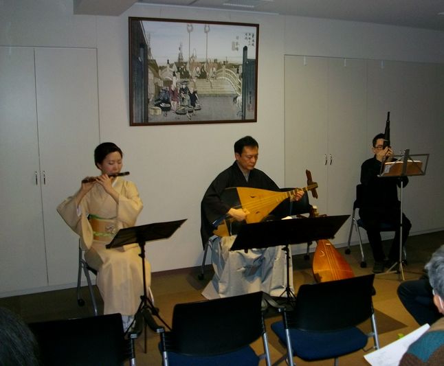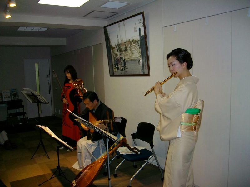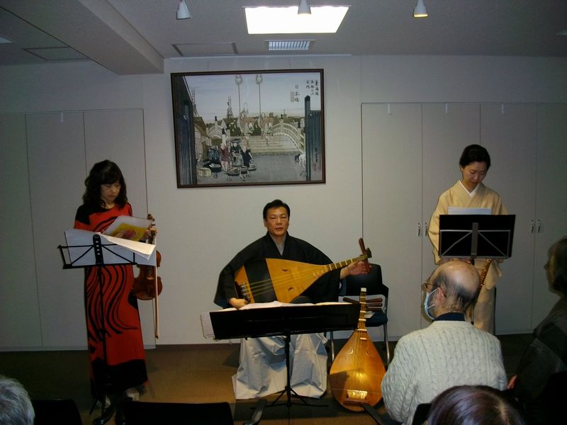 先日、第18回日本橋富沢町樂琵会をやってきました。毎年年明けの回は現代琵琶楽ということでやっているのですが、今年はヴァイオリンの田澤明子さん、フルート・龍笛の久保順さん、笙のジョウシュウ・ジポーリン君をゲストに、ちょっとてんこ盛りの演目でやってきました。いつもよりお客様は少なめでしたが、充実の演奏をすることが出来ました。
