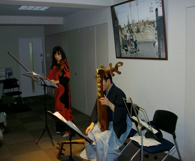 また今回は笙のジョシュ君が参加してくれたお陰で、また新たな展開が生まれました。ヴァイオリン・樂琵琶・笙の編成で拙作「凍れる月」を演奏したのですが、これが今後の可能性を感じさせる良い演奏でした。彼は日本とアメリカを行ったり来たりなのですが、これからは私の演奏会に登場する機会が多くなりそうです。