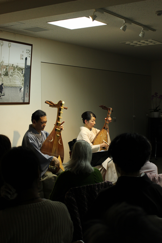 昨年12月の日本橋富沢町樂琵会にて、筑前琵琶の平野多美恵さんと