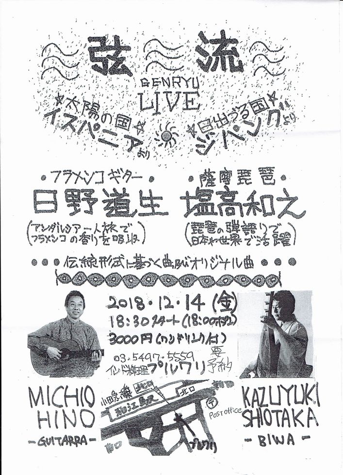 そして年内は日本橋富沢町樂琵会の他、久しぶりにフラメンコギターの日野道夫先生とのライブもあります。こちらは狛江のインド料理店プルワリでの気軽なライブです。21月14日18時30分開演です。是非!!