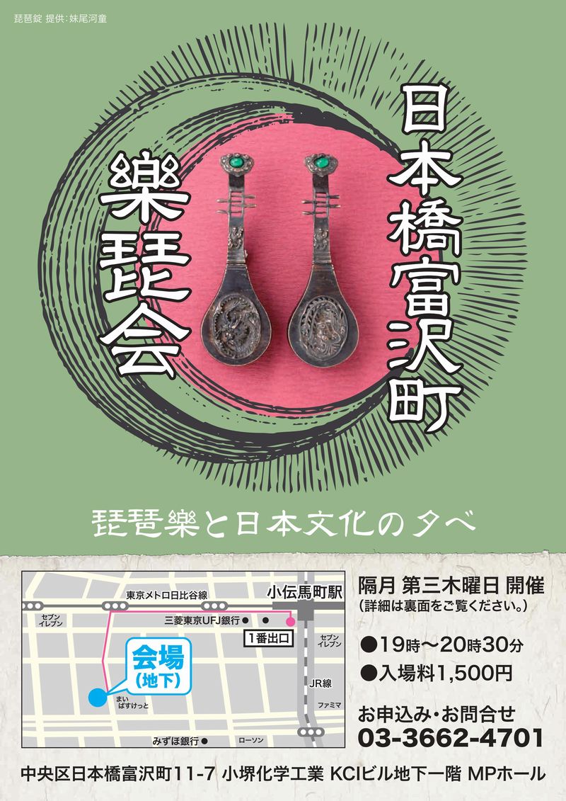 私は日本橋富沢町樂琵会と琵琶樂人倶楽部という二つの定例会を主催しているのですが、両方とも1年間のスケジュールを前年の10月までには決めます(出演者も内容も)。琵琶樂人倶楽部は年に12回、日本橋富沢町樂琵会は年に5回の計17回の演奏会を1年以上前に決定しているのです。もちろんゲストの方にも連絡を取って承諾を頂き、前年の11月には次の年の一年間のスケジュールが入ったチラシを配り始めます。