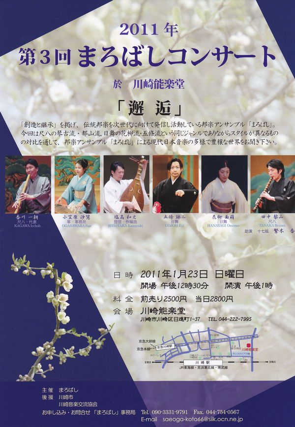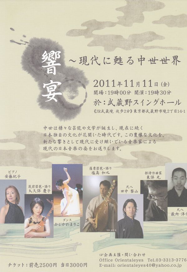 曲目:祇園精舎、花の行方、まろばし~尺八と琵琶の為の 他