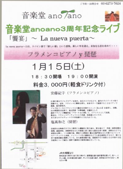 荻窪かんげい館「春の宴」 塩高和之 5th CD「沙羅双樹Ⅱ」発売記念ライブ