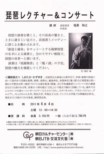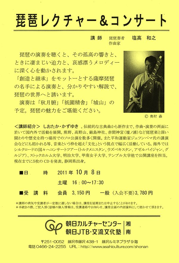 Biwa player, performer, Composer – SHIOTAKA Kazuyuki – 塩高和之 – 琵琶奏者・作曲