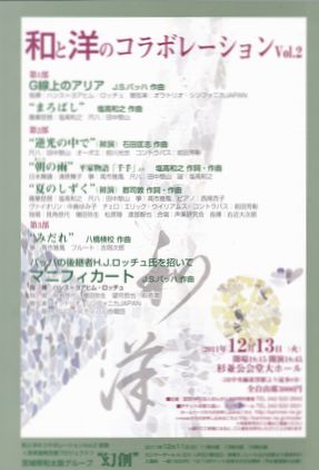 曲目:春の宴~(筝・尺八・琵琶唄)、まろばし(尺八・琵琶)、花の行方(筝・尺八)、静~緋色の舞(琵琶語り)、大原御幸(筝・琵琶唄) 他